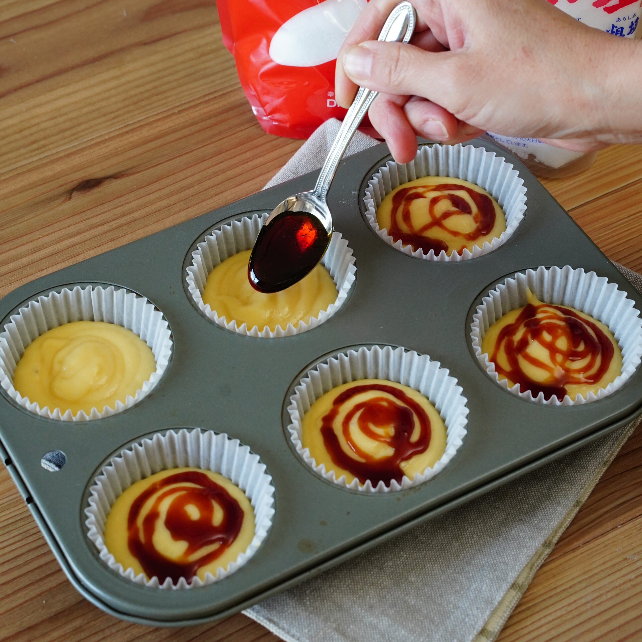 型に流し入れる。塩を振り、冷ました1⃣をかけてさっくりと混ぜてマーブル模様にする。