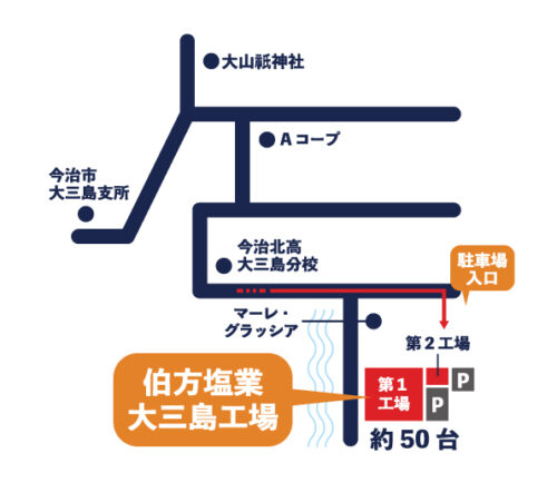 場所:愛媛県今治市大三島町台(うてな) 32番地 伯方塩業株式会社 大三島工場